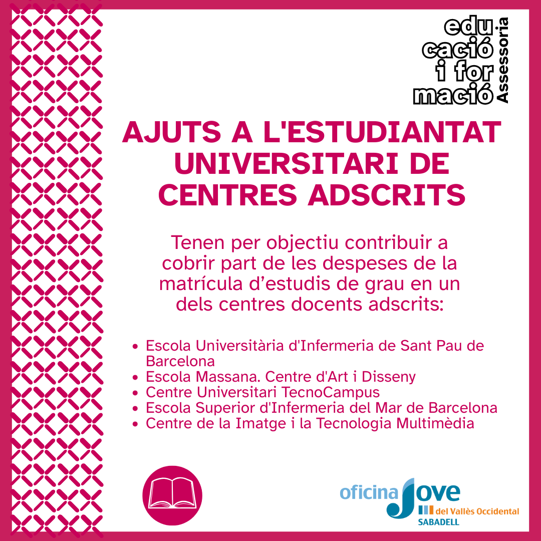 Els ajuts a l'estudiantat universitari de centres adscrits (ACA) tenen per objectiu contribuir a cobrir part de les despeses de la matrícula universitària de l'estudiantat universitari que cursa estudis universitaris oficials de grau en un dels centres docents adscrits següents: