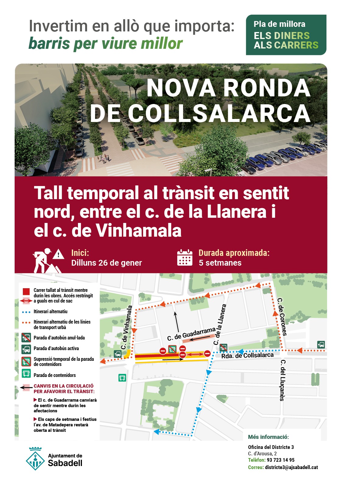 Tall temporal al trànsit en sentit nord, entre el c. de la Llanera i el c. de Vinhamala
