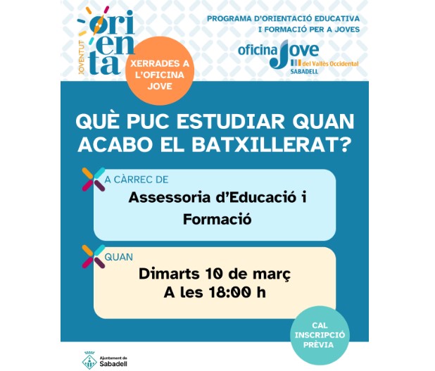 Dimarts 10 de març de 2026, de 18 a 19.30 hXERRADA DINS EL PROGRAMA JOVENTUT ORIENTA