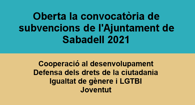 Us informem que ja ha sortit la convocatòria de les subvencions de l’Ajuntament de Sabadell 2021 destinades a projectes en defensa dels drets de la ciutadania.