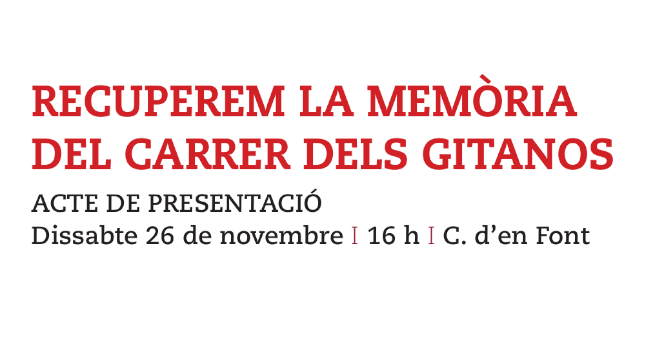 Aquest proper dissabte 26 de novembre, "Recuperem el carrer dels gitanos!". Vine a conèixer la història del carrer d'en Font (carrer dels Gitanos) i del poble gitano de Sabadell.