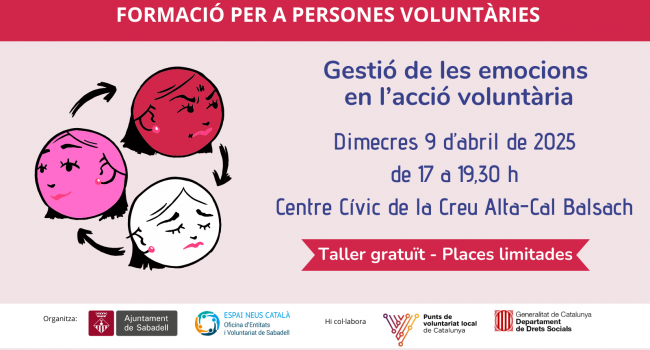 Ubicació: Can MarcetTaller: Gestió de les emocions en l'acció voluntària