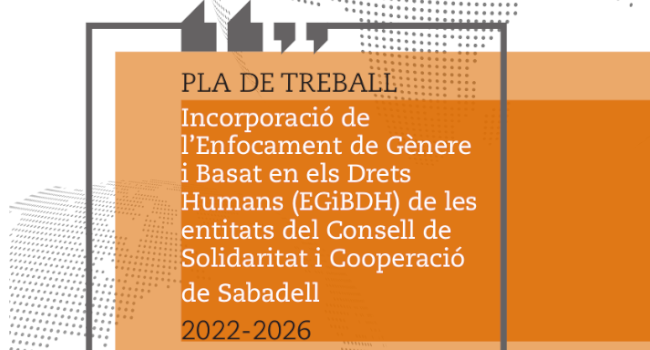 A la sessió plenària del Consell de Solidaritat i Cooperació del passat 16 de març es va presentar el pla de treball "Incorporació de l’Enfocament de Gènere Basat en els Drets Humans (EGiBDH) de les entitats del Consell de Solidaritat i Cooperació (2022-2026)", elaborat conjuntament entre les entitats i l'Ajuntament, amb el suport de la Diputació de Barcelona.