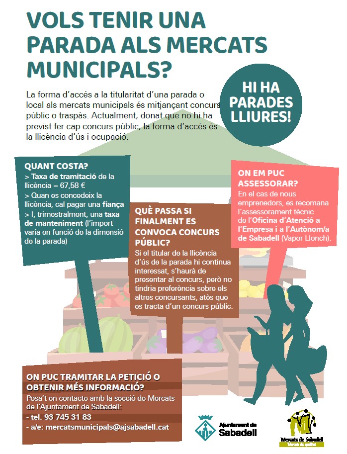 La forma d’accés a la titularitat d’una parada o local als mercats municipals és mitjançant concurs públic o traspàs. Actualment, donat que no hi ha previst fer cap concurs públic, la forma d’accés és la llicència d’ús i ocupació.