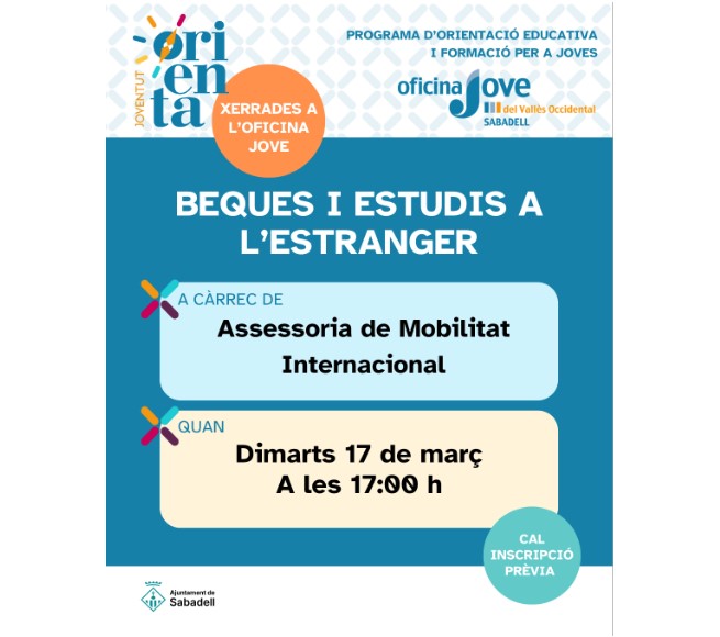Dimarts 17 de març de 2026, de 17 a 18.30 hXERRADA DINS EL PROGRAMA JOVENTUT ORIENTA