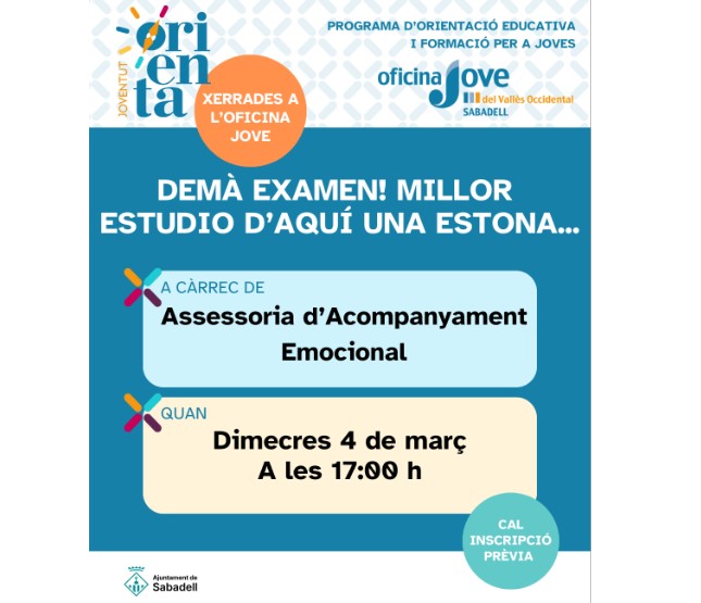Dimecres 4 de març de 2026, de 17 a 18.30 hXERRADA DINS EL PROGRAMA JOVENTUT ORIENTA
