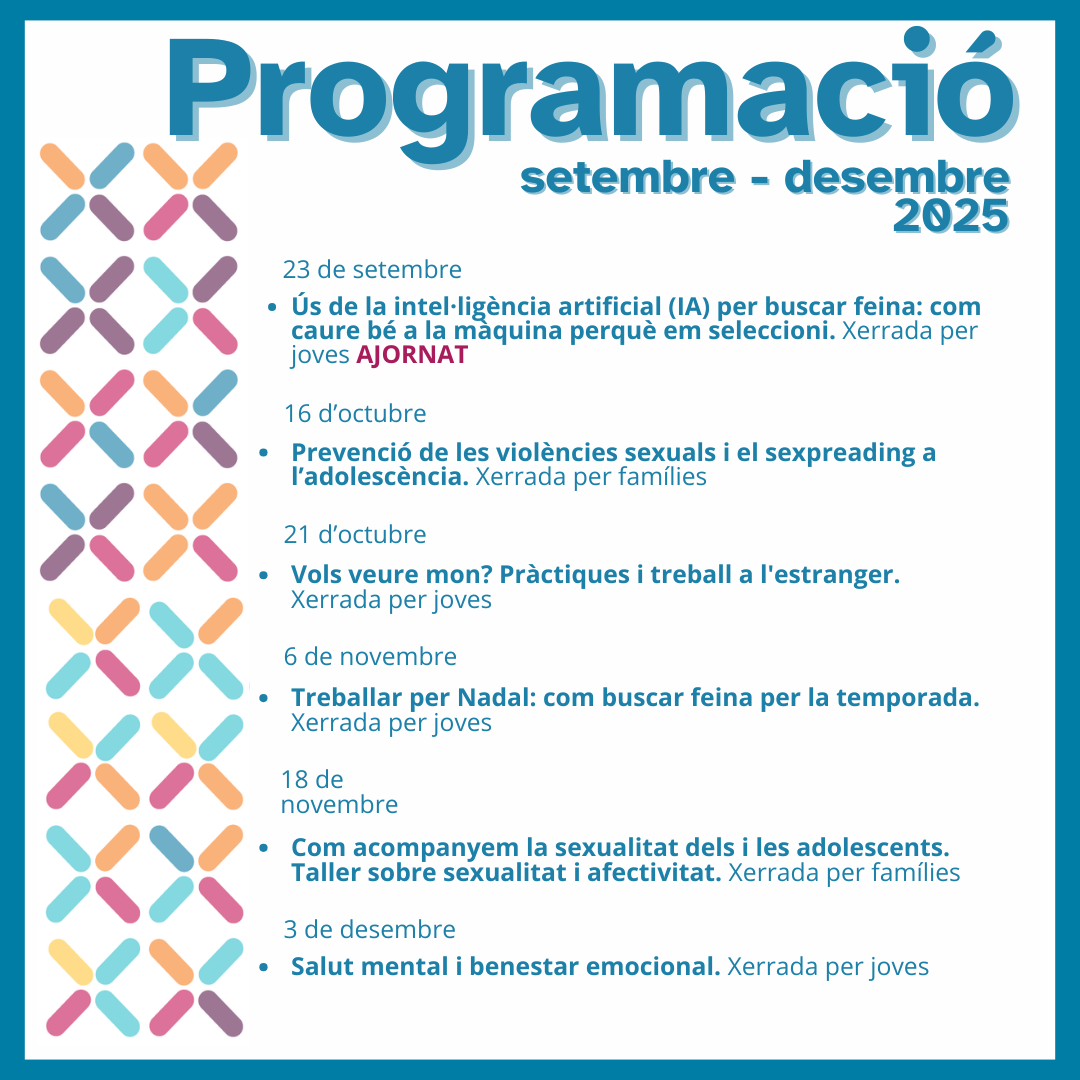 Proramaci贸 de tallers/xerrades previstes de setembre a sesembre 2025 a l'Oficina Jove de Sabadell 馃憟