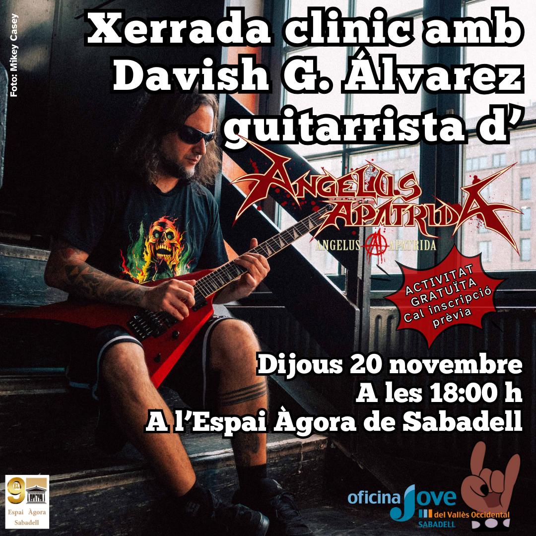 Parlarem sobre el procés creatiu, la importància de la pràctica, de l’equip i el so, consells… i també hi haurà una part pràctica on Davish ens ensenyarà els seus millors licks, rutines i trucs! 🎸🎸🎸