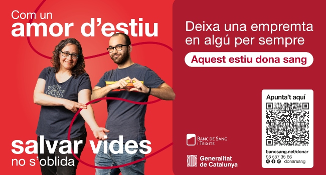 Amb el lema “Com un amor d’estiu, salvar vides no s’oblida”, la campanya d’enguany fa una crida a donar sang amb companyia, posant en valor el gest solidari i emotiu que suposa aquest acte.
