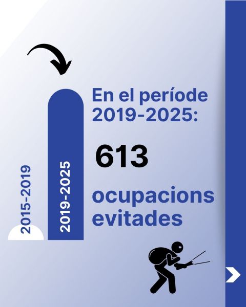Fa uns anys, les ocupacions evitades eren molt menys nombroses: el 2016 se’n van evitar 23 i el 2017, només 16. En canvi, el 2024 ja es van evitar 172 ocupacions i el 2025 s’ha assolit la xifra més alta registrada fins ara.