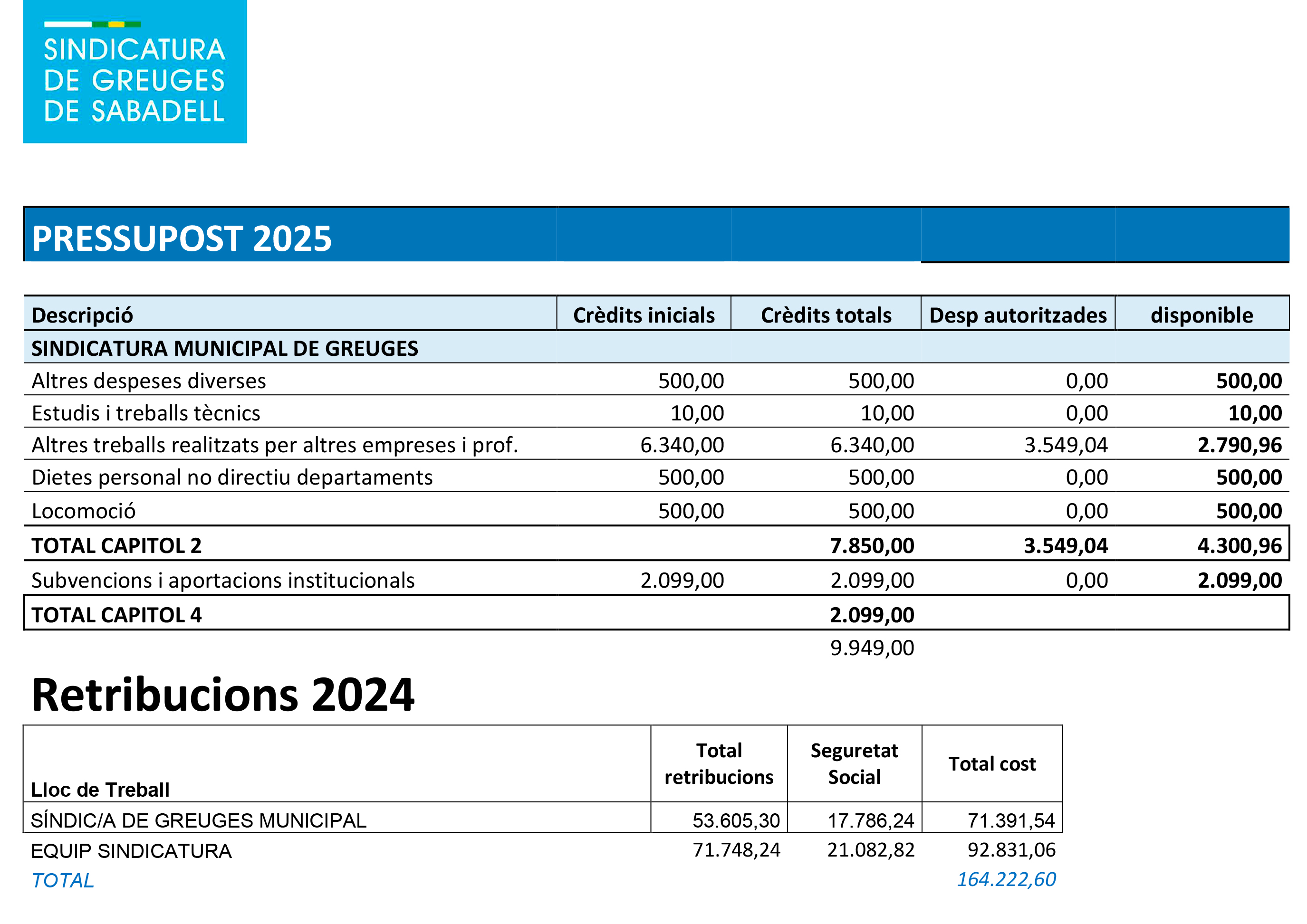 Gestió econòmica Descarregar document pressupost 2025 Pressupostos d'anys anteriors: Pressupost 2024 Pressupost 2023